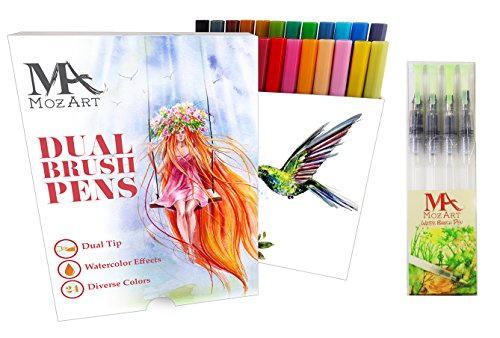 Dual Brush Pen Set (24 Colors + 4 Water Brush Pens)