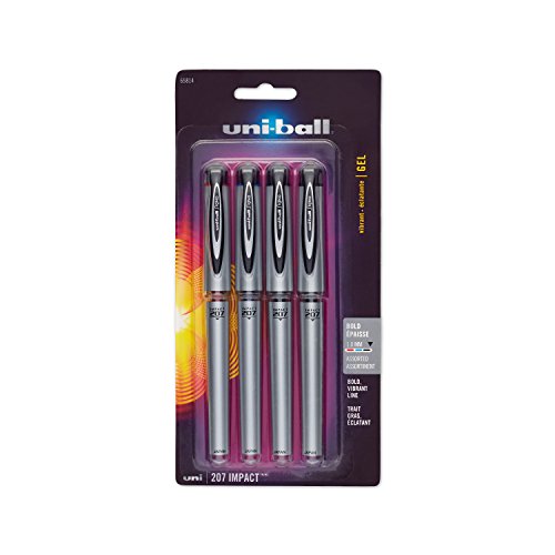 uni-ball 207 Impact Gel Pens, Bold Point (1.0mm), Assorted Colors, 4 Count